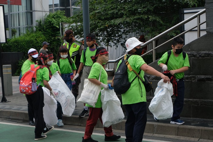 Kegiatan HPSN & HBI dimulai dengan parade sekaligus aksi bersih pungut sampah dan pilah sampah bersama ratusan sukarelawan diiringi musik tanjidor, kentongan bambu dan ondel-ondel.