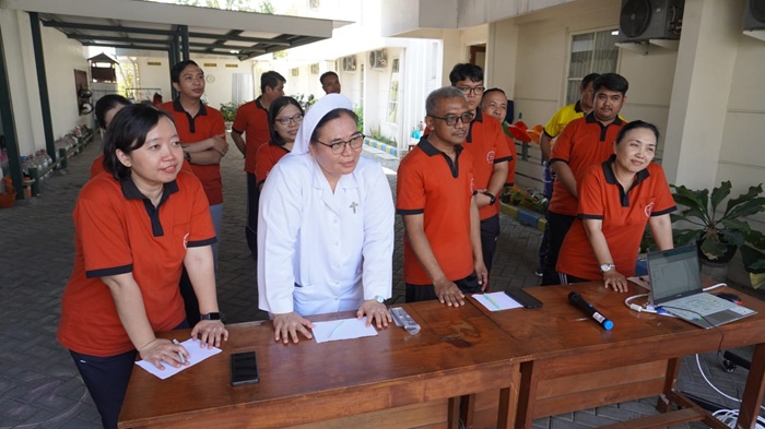 Acara yang berlangsung pada Jumat, 15 Agustus 2025 ini diawali dengan kerja bakti membersihkan area depan Tarakanita Development Center 2 (TDC) dan Kantor Wilayah Surabaya.